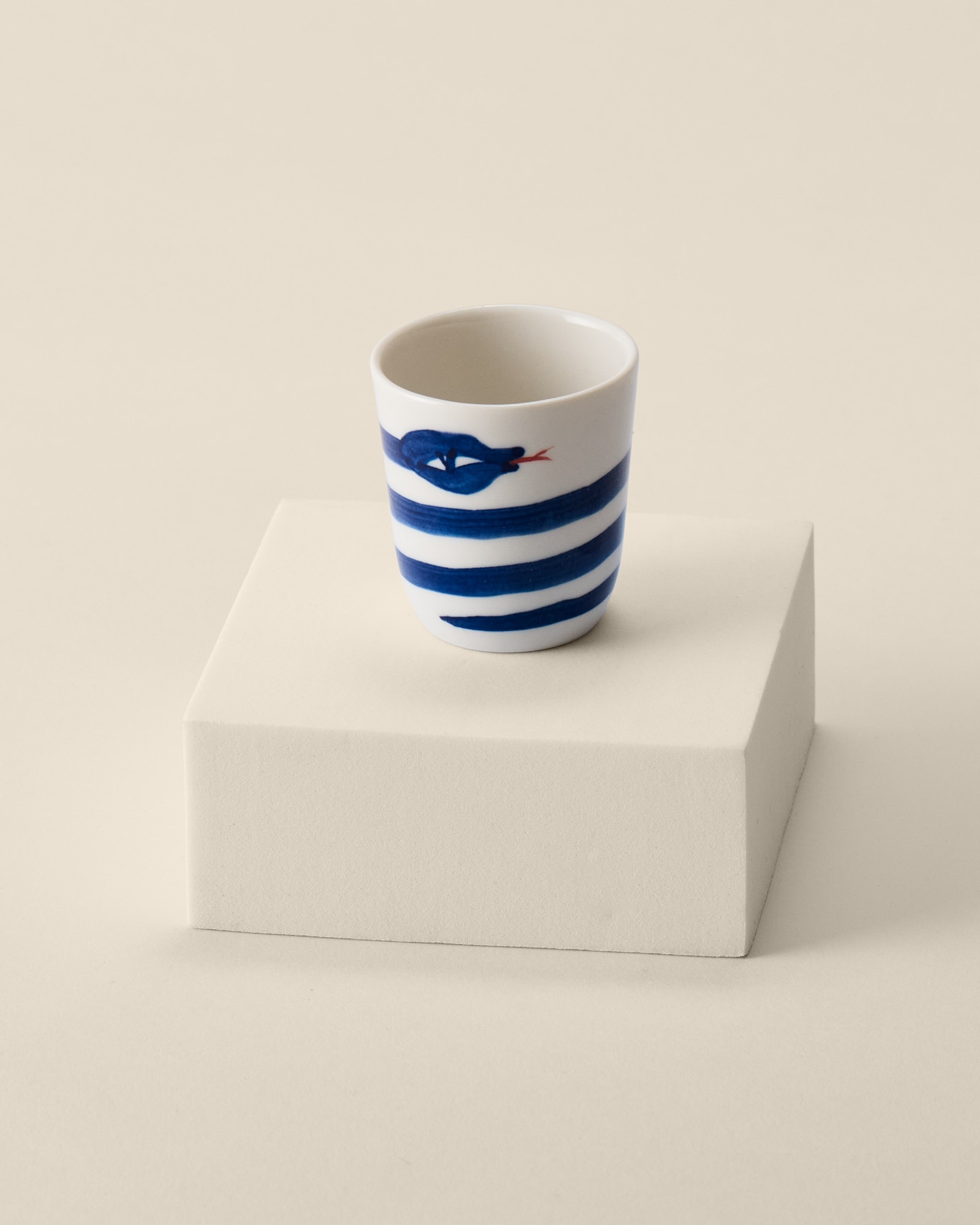 Majhna aperitivo skodelica iz porcelana, ki jo je s tehniko vlivanja izdelala umetnica Bojana Ristevski Mlaker. Skodelico ročno poslikava Miha Perne z motivom kače. Motiv se navezuje na frazem kačja slina, ki označuje močno, pekočo alkoholno pijačo, najpogosteje domače žganje. Med pohodniki in gorskimi ljubitelji je poimenovanje povezano s predstavo o ostri, žgoči naravi žganja, ki naj bi spominjala na domnevni pekoč učinek kačjega strupa.