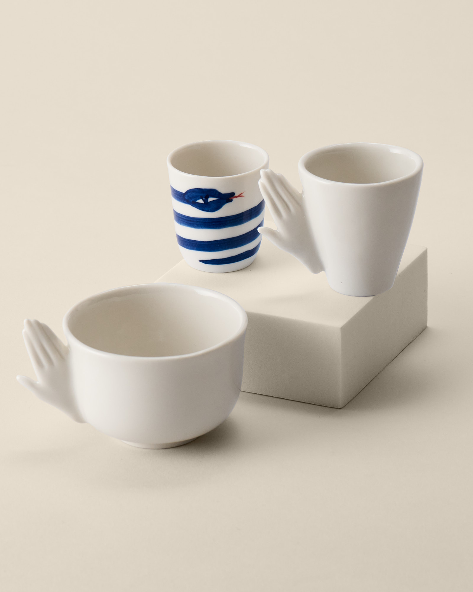 Aperitivo ali espresso skodelice so edinstvene, sodobnega dizajna s prepoznavno ljudsko motiviko. Zaradi ročne izdelave so mogoča manjša odstopanja, kar vsak izdelek naredi unikaten.