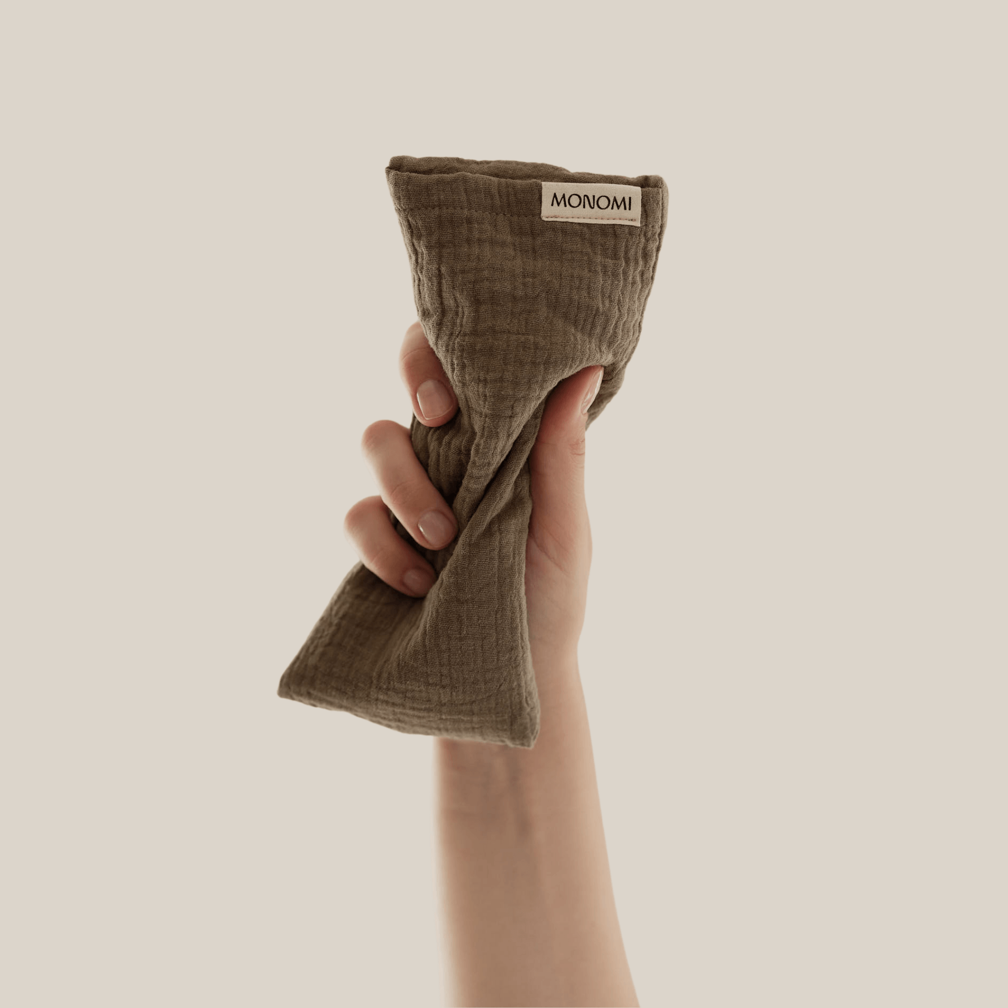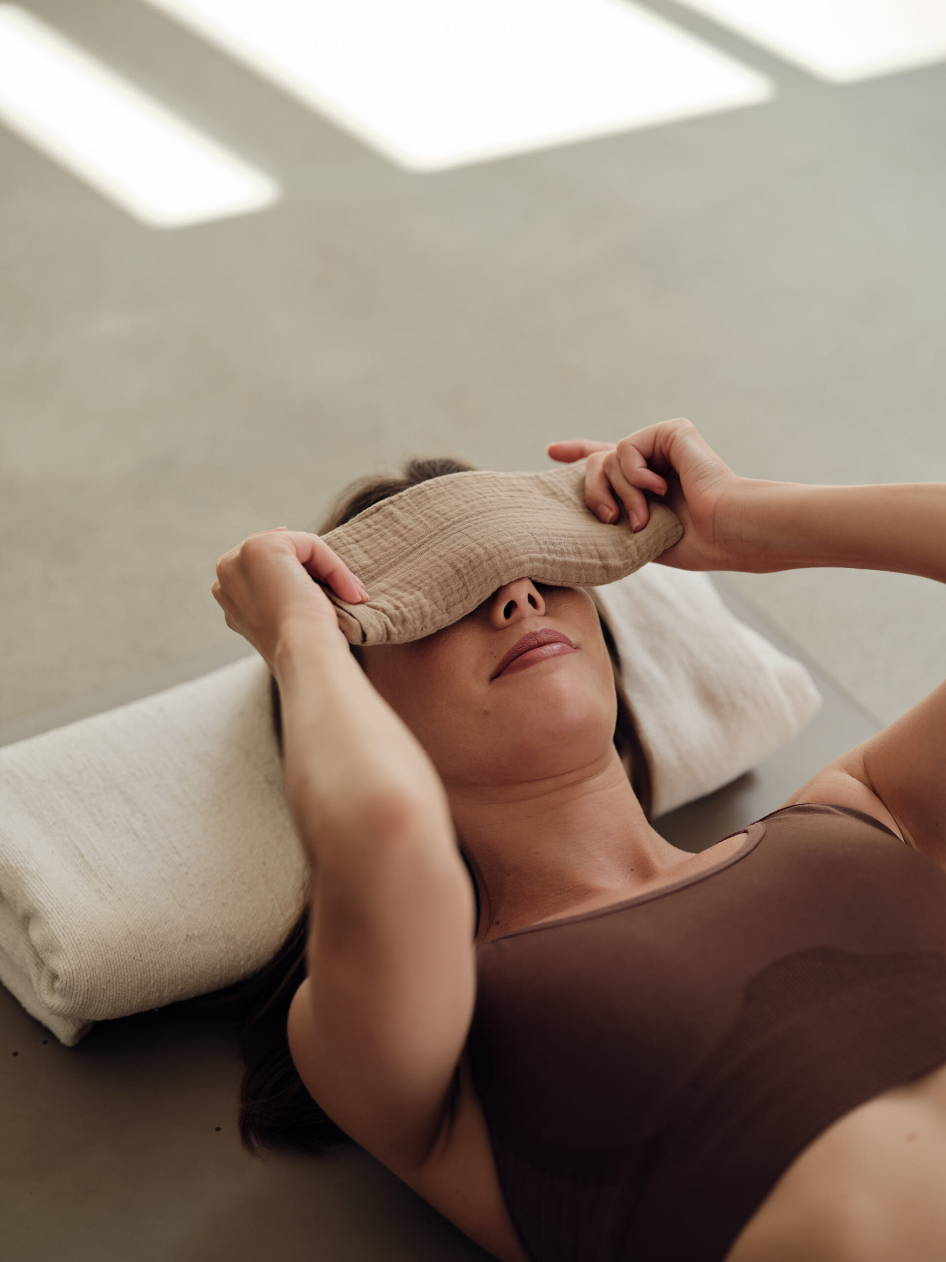Mehka obtežilna blazinica za oči Monomi je zasnovana za sprostitev, meditacijo in globok počitek. Nežen pritisk in zatemnitev svetlobe pomagata umiriti misli ter sprostiti napetosti v predelu oči, čela in čeljusti.