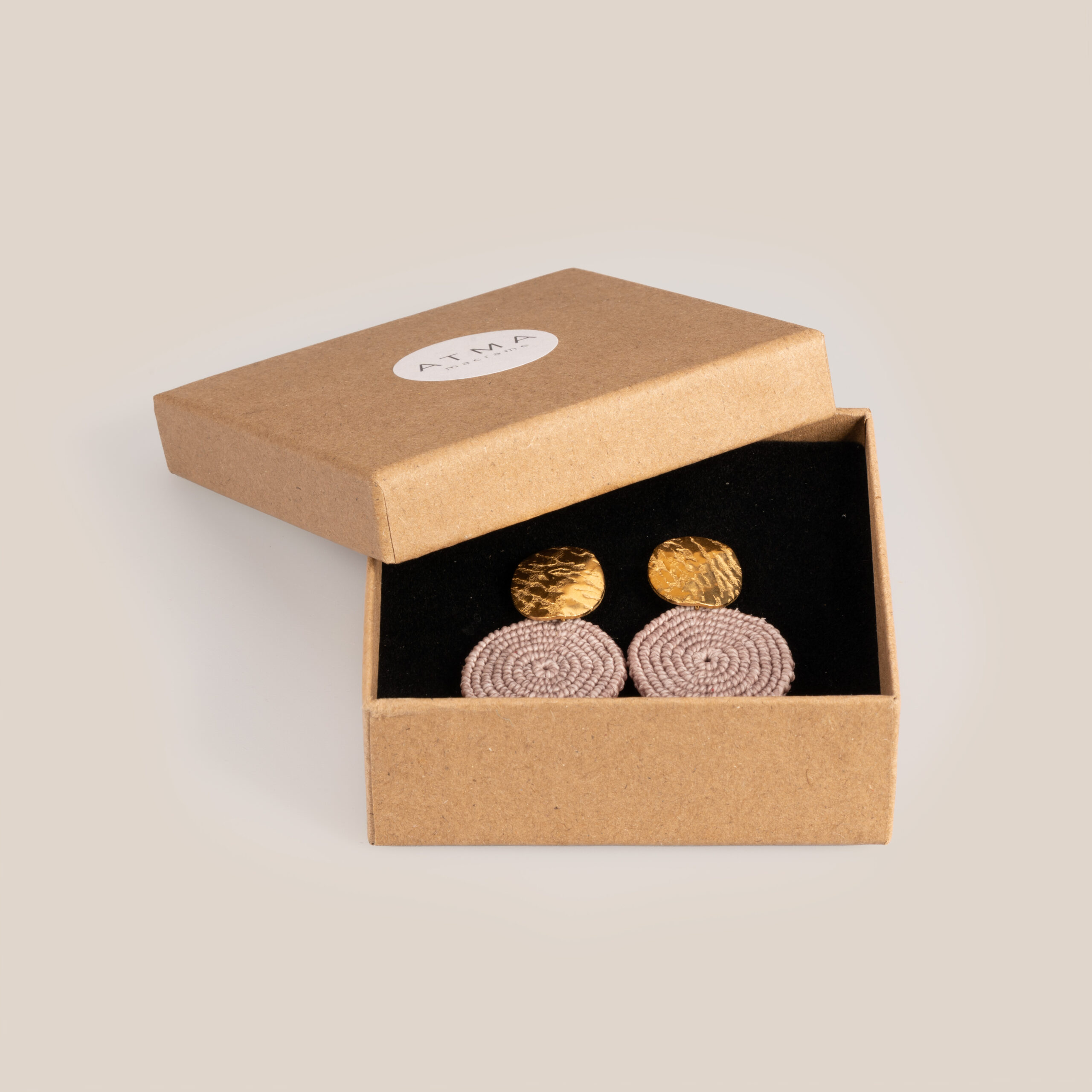 Makrame uhani so plod potrpežljivega ročnega dela in ljubezni do detajlov, ki nastajajo pod prsti ustvarjalke Nuše, znamke ATMA by Nusha. Vsak vozelj je skrbno načrtovan, kar vsakemu paru podari unikatno teksturo in organsko obliko. Kombinacija nežnih povoščenih niti in sijočih kovinskih elementov ustvarja popolno ravnovesje med boemsko sproščenostjo in sodobno eleganco.