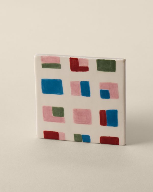 Unikatna keramična ploščica izpod rok Klare Hliš, ustvarjalke za znamko Cosmic Latte. Nastane s tehniko valjanja gline, nato pa je ročno okrašena z engobo in podglazurnimi svinčniki, ki ustvarijo nežne, subtilne vzorce. Ploščica je nato premazana s sijajno, transparentno glazuro, ki vzorce dodatno poudari in zaščiti.