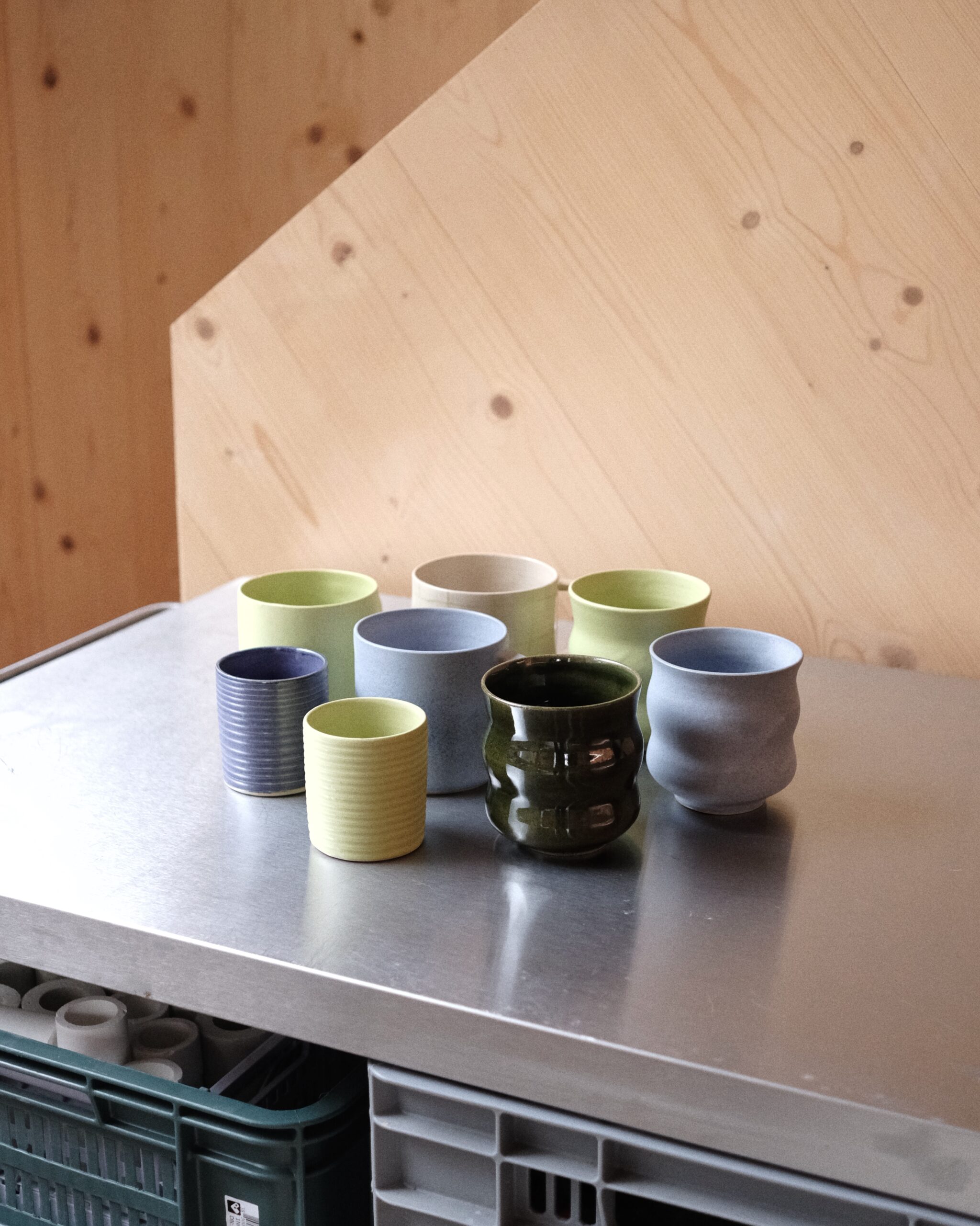 Posebnost skodelic je njihova glazura, ki ob peki ustvari unikatne prelive. Na voljo so v treh premišljenih odtenkih: temno zeleni, svetlo zeleni in svetlo modri. Zaradi narave ročnega dela in visokih temperatur v peči je vsaka skodelica neponovljiv original.